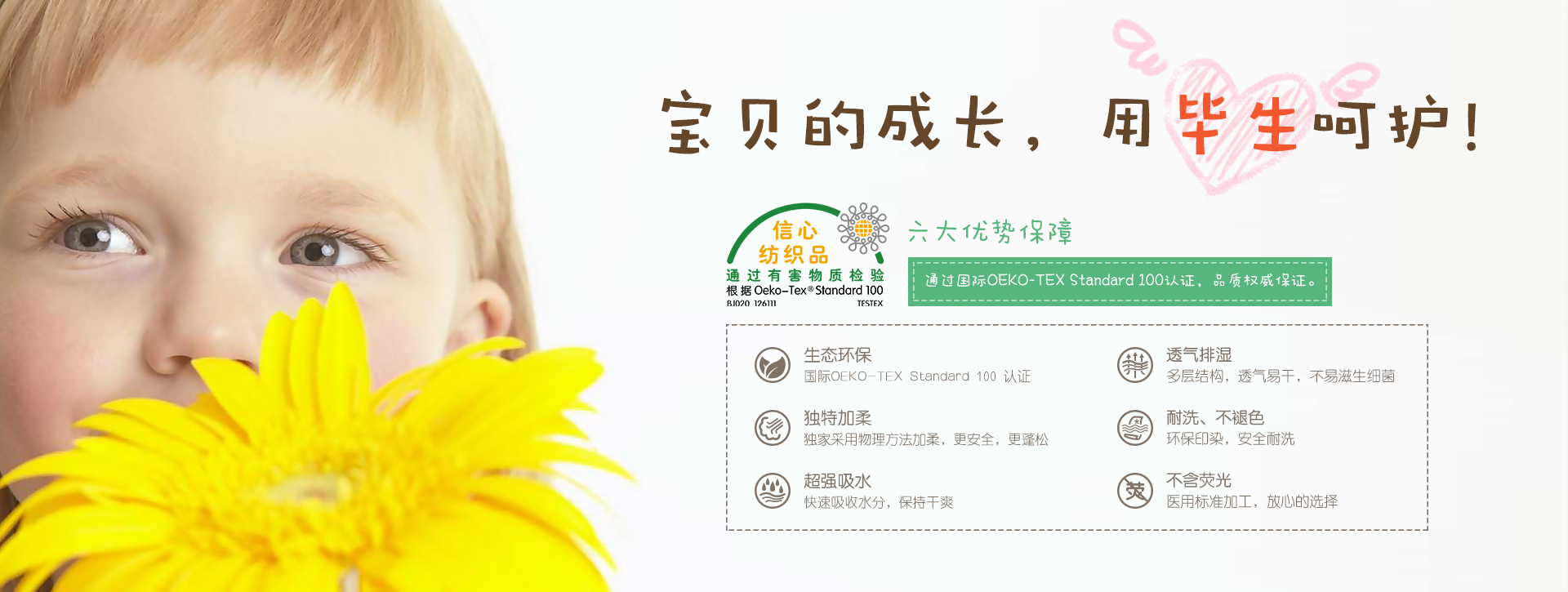 公司共投資6000多萬元人民幣,占地30畝,有260多名員工,有織布、織帶、漂煉、染色、縫紉、數碼印花六個車間,廠房建筑面積約16000平方米。主要生產嬰兒紡織品(OEKO-TEX, Standard100中的Ⅰ類產品)及繃帶(ISO13485中的Ⅰ類產品)。產品主要銷往德國、奧地利、法國、荷蘭、土耳其、日本、馬來西亞、菲律賓、新加坡、智利、安哥拉美國、加拿大及中國內地,擁有環球影城、AEON等知名品牌的生產授權,并通過了BV、TUV、SMTA等公司的社會責任驗廠;取得了AEON質量管理認證和OEKO-TEX Standard100的證書(BJ020126111 TESTEX),是一批國際國內知名品牌的代工企業,如:西松屋、noukies、KUB、好孩子、英氏、巴拉巴拉等。
